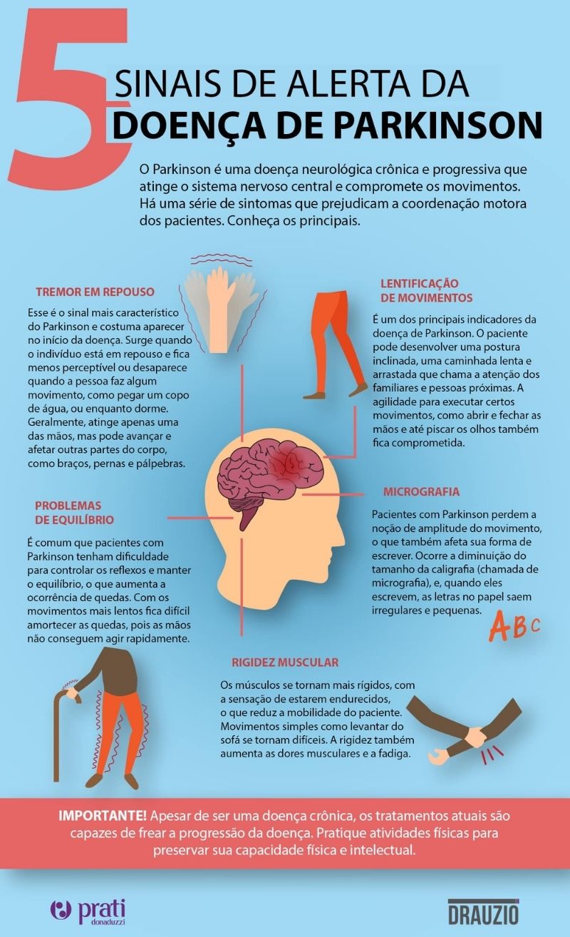 Identificar os sinais da doença de Parkinson é essencial para controlar sua progressão. Conheça cinco deles neste infográfico.